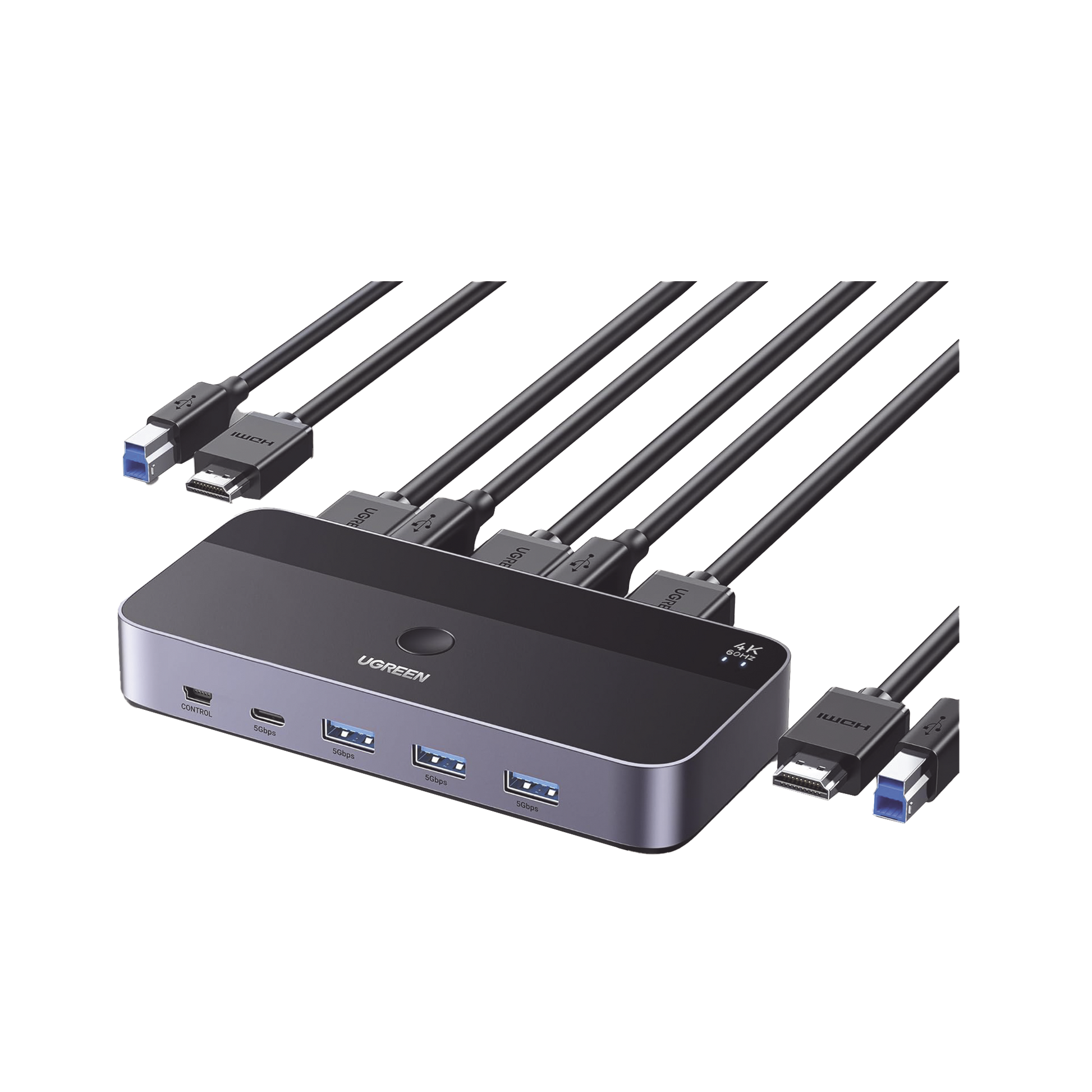 Conmutador KVM HDMI 4K | HDMI 2.0 | 2 Entradas 1 Salida | 4 Puertos USB 3.0 (3 USB-A *1 USB-C) | Soporta 4K@60Hz | HDR | Indicador Led | Compatible Win, MacOs y Linux | Carcasa de Aluminio.