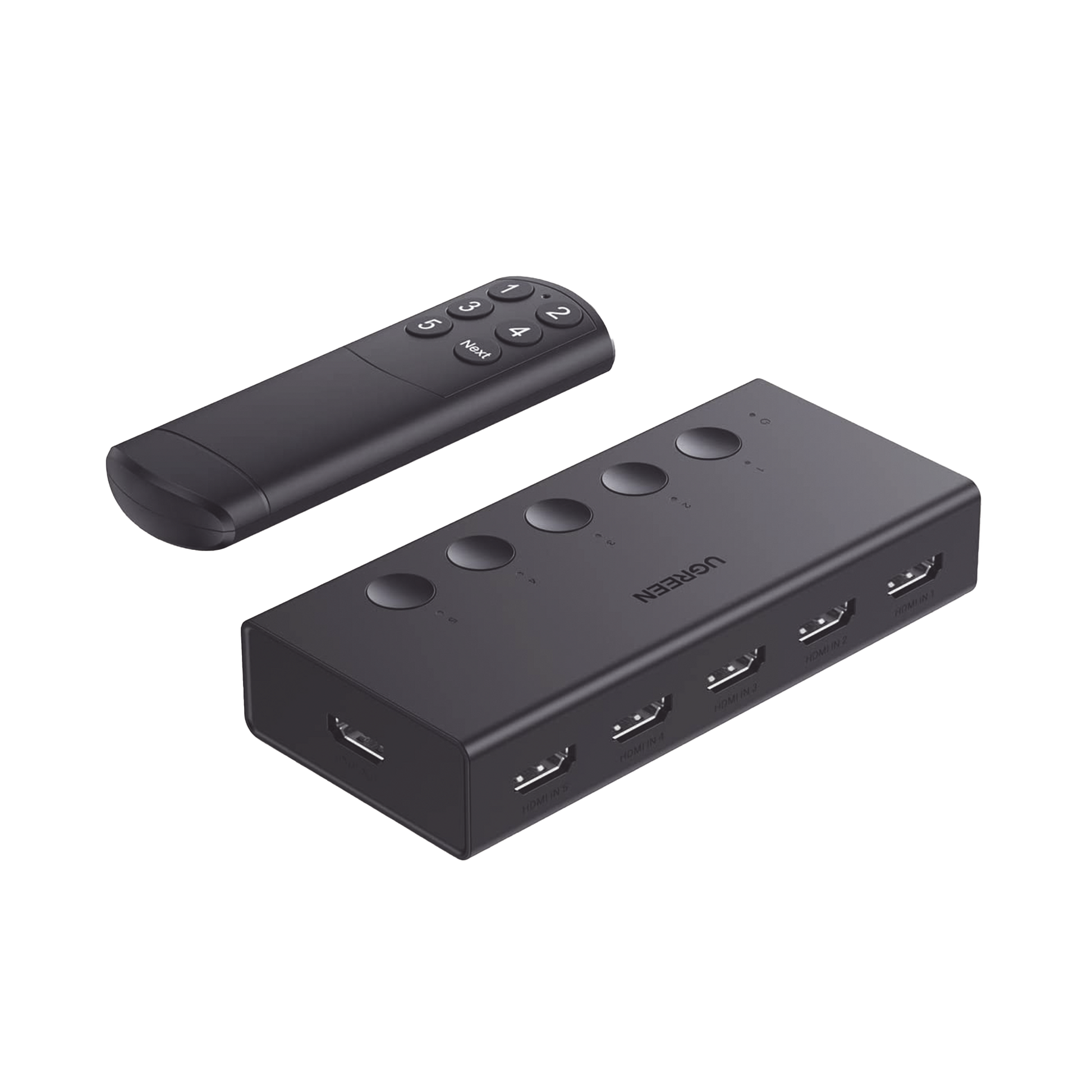 Conmutador HDMI 5X1 | 4K@60Hz | HDMI 2.0, 1.4 | HDCP 2.2, 1.4 | VRR | Dynamic HDR | 3D | CEC | EDID | IR 10m | 18Gbps | Cambio Manual y por Control Remoto | Incluye Cable de Alimentación USB.