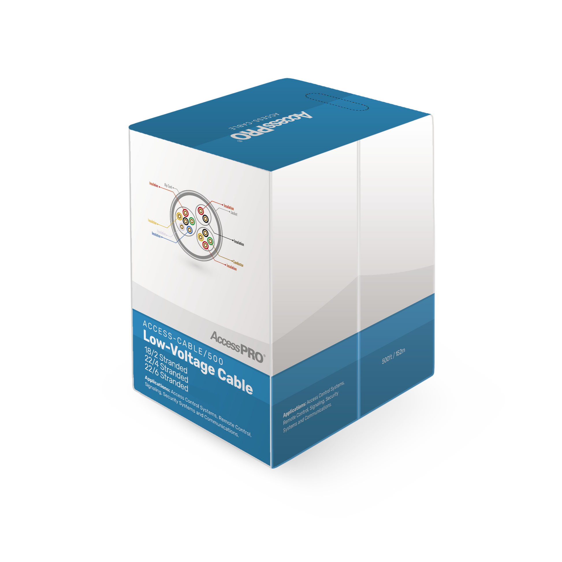 Bobina de 152 metros de cable compuesto de, 6 y 4 conductores calibre 22 y 2 Conductores calibre 18, para aplicaciones de control de acceso