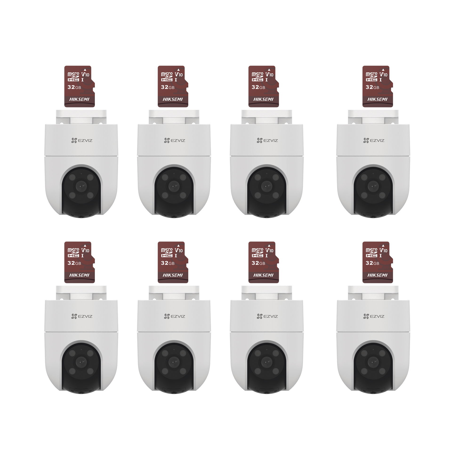 Kit de Camaras WiFi, Incluye 8 Piezas CS-H8C y 8 Piezas HS-TF-E1/32G / Audio de Dos Vías / Detección de Movimiento / Luz Blanca / Sirena / Uso en Exterior con Protección