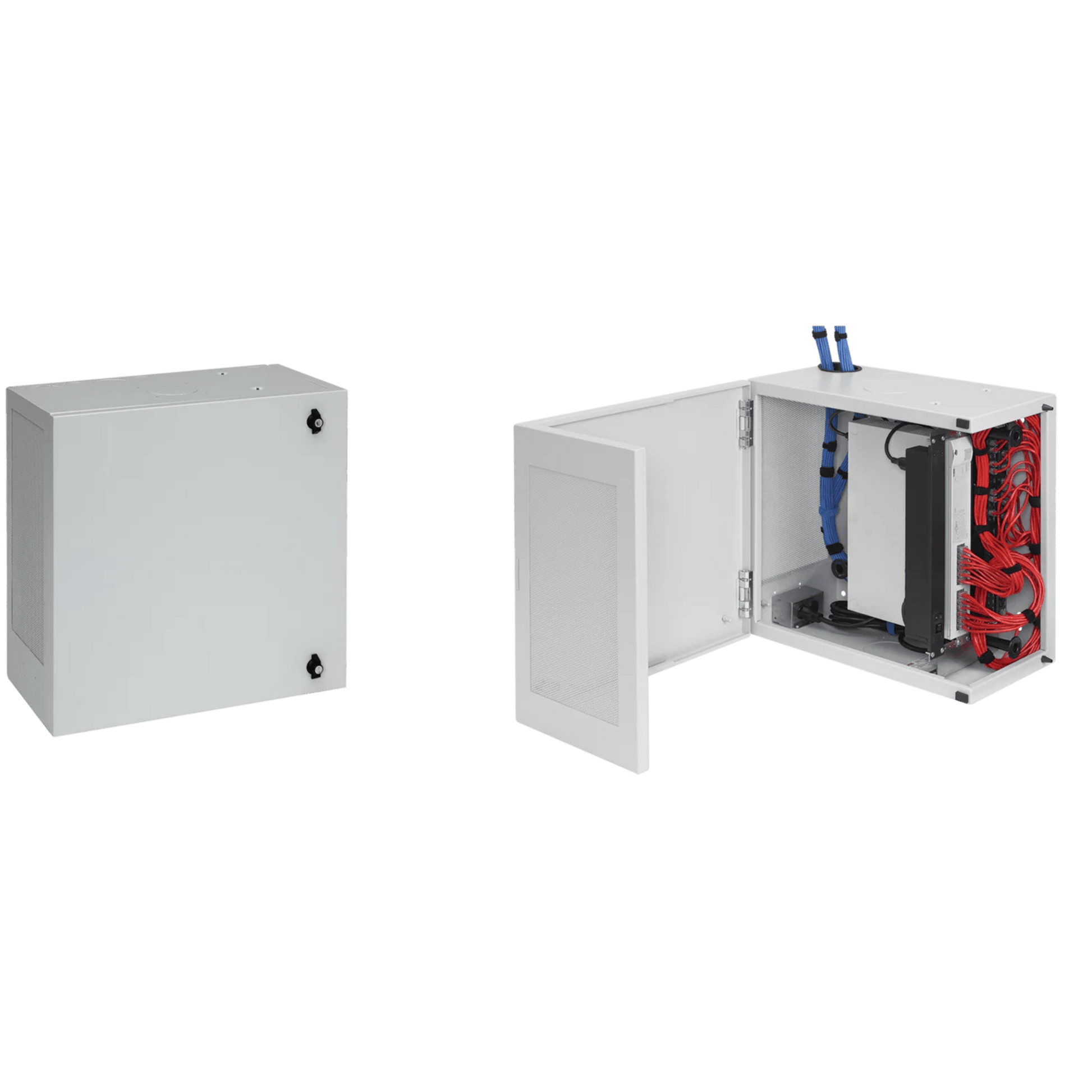 El gabinete de montaje en pared L-Box, de perfil bajo y orientado verticalmente, es extremadamente versátil y puede usarse en entornos públicos para montar, almacenar y proteger equipos de red, paneles de conexión y conexiones. La puerta con bisagras en forma de L proporciona acceso completo por dos lados al equipo instalado, mientras que los rieles de rack fijos se adaptan a diferentes tamaños de equipos.