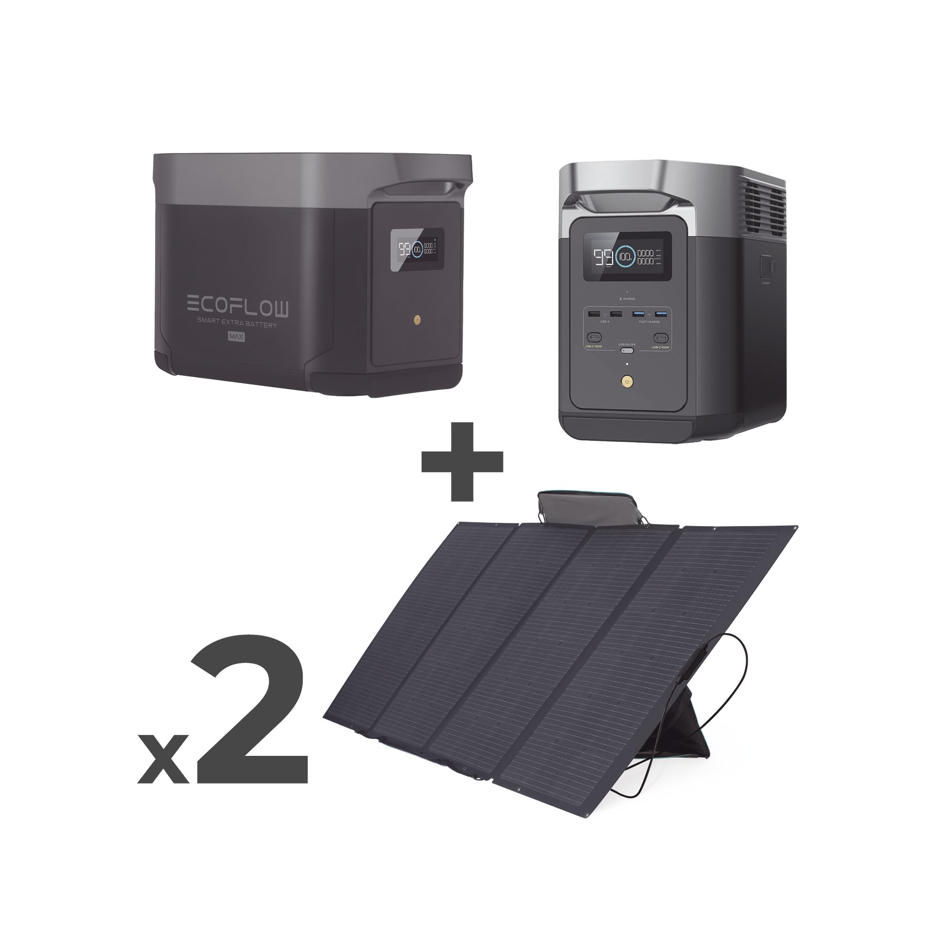 Kit de Estación de Energía Portátil 2048Wh + Batería Externa 2048Wh + 2 Paneles Solares Flexibles 400W (4096Wh, 800W Totales)