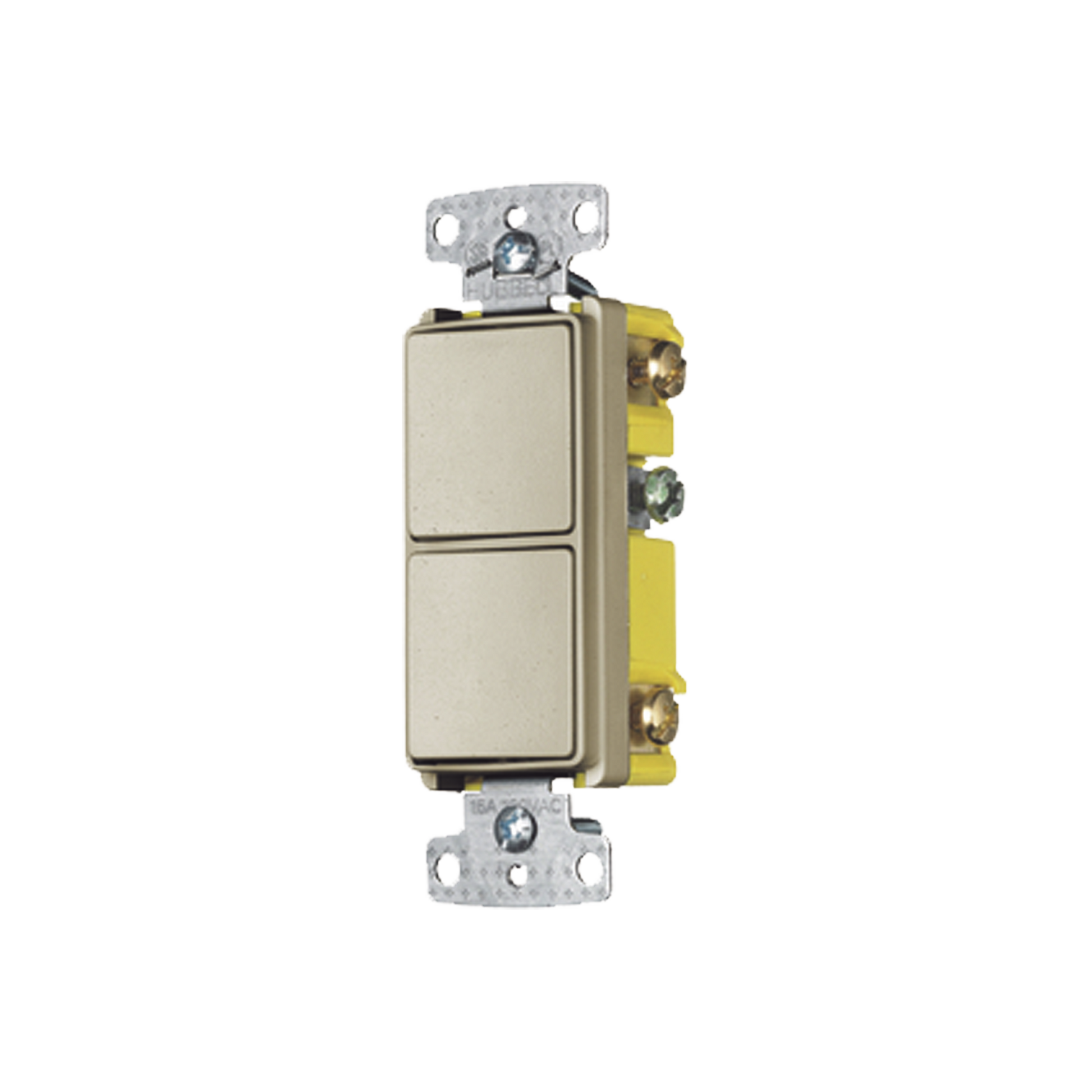 Interruptor Residencial 15 A 120-277 V / 2 Bases Unipolares / Cableado lateral / Color Marfil.
