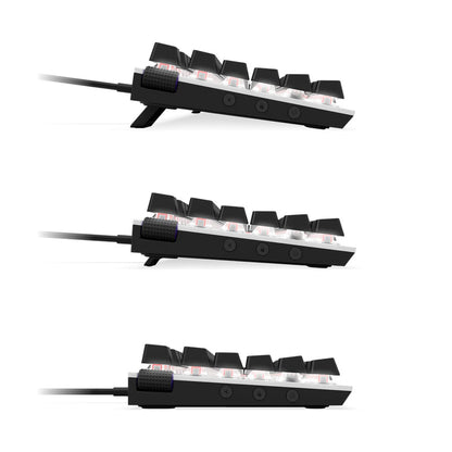 - Interruptores Gateron Red: Suaves y lineales, ideales para juegos rápidos y sin clics audibles.