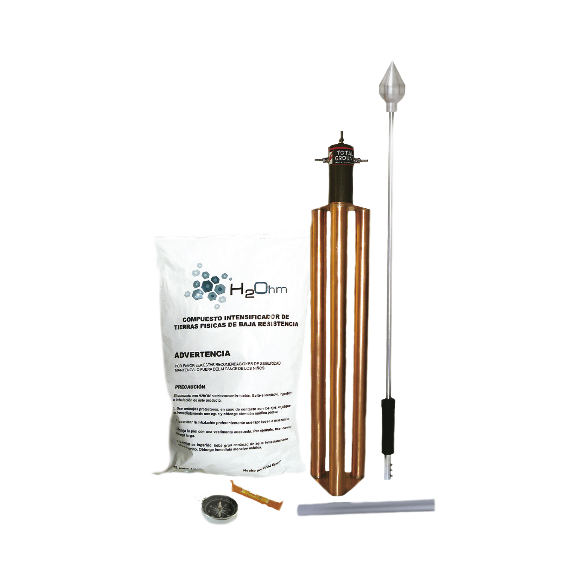 Punta Pararrayos para 80 m de Diámetro de Protección con Electrodo y Mejorador de Terreno.