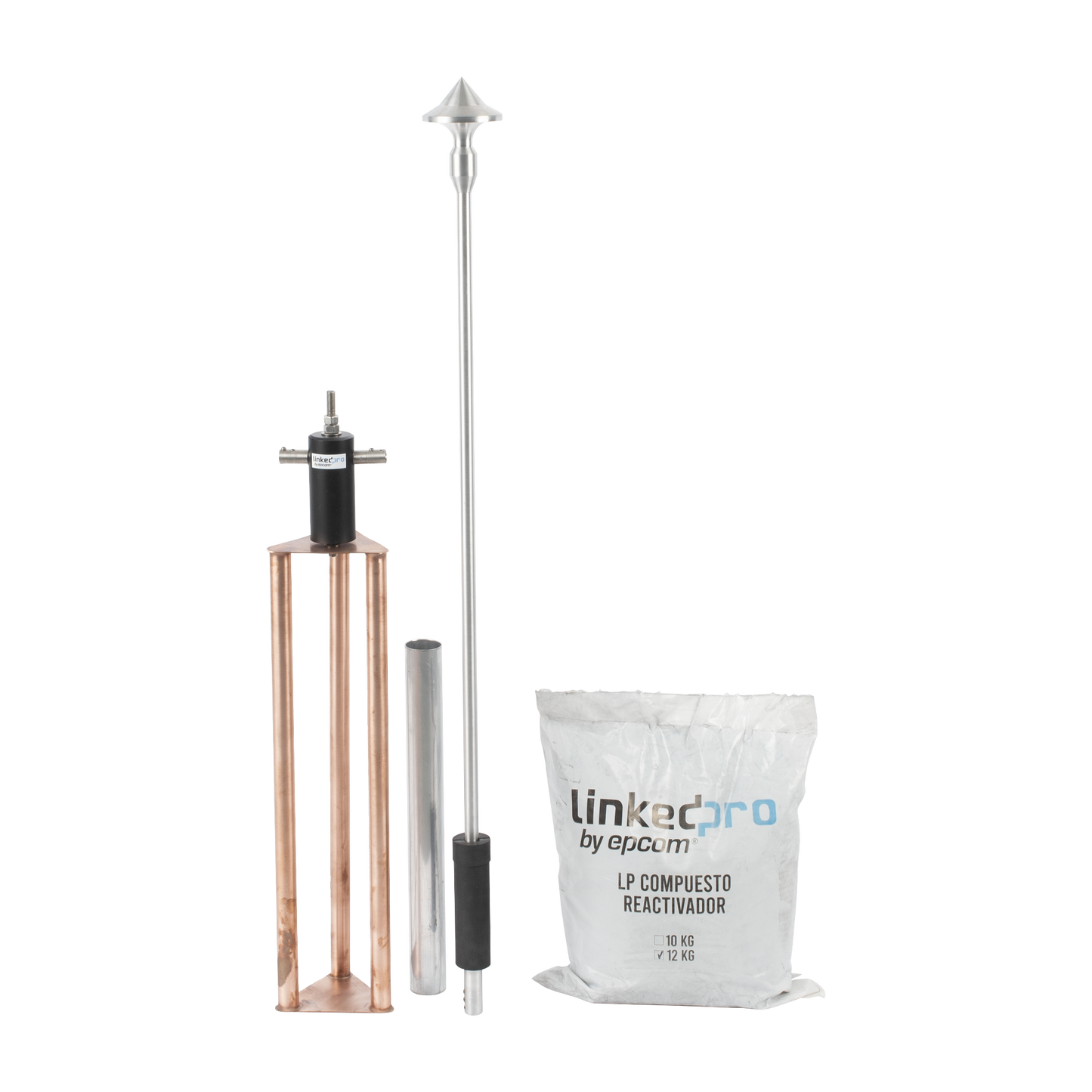 Punta Pararrayos de rechazo catódico fabricada en Aluminio, para protección de estructuras de 50 metros en diámetro de cobertura. Brinda un punto seguro para captar y drenar la corriente del rayo a tierra.