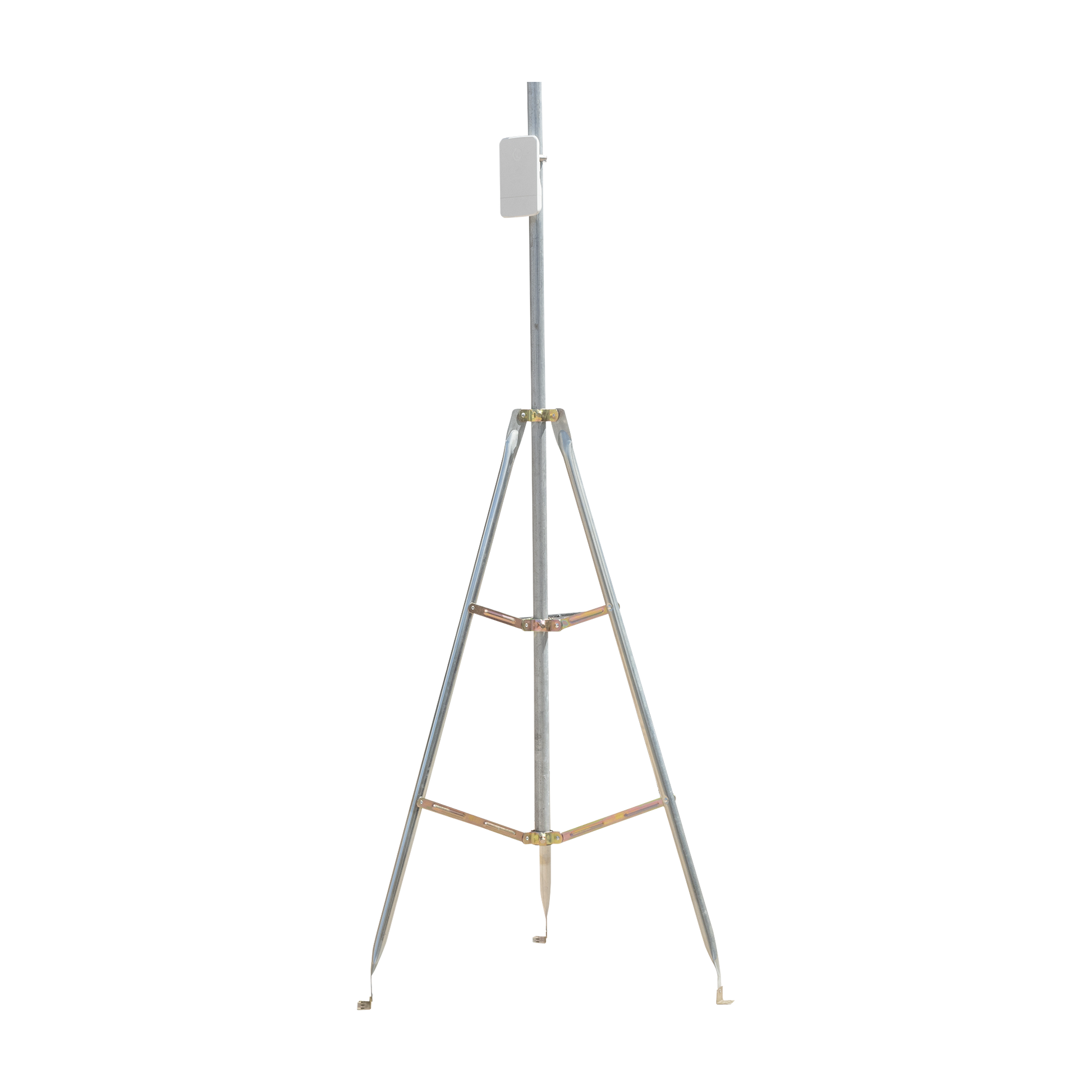 Incluye nuestro montaje de tripie para exterior modelo 1con el mástil de 3 metros 1 Esto para hacer una instalación mucho más rapida y limpia en los lugares donde no hay donde instalar.