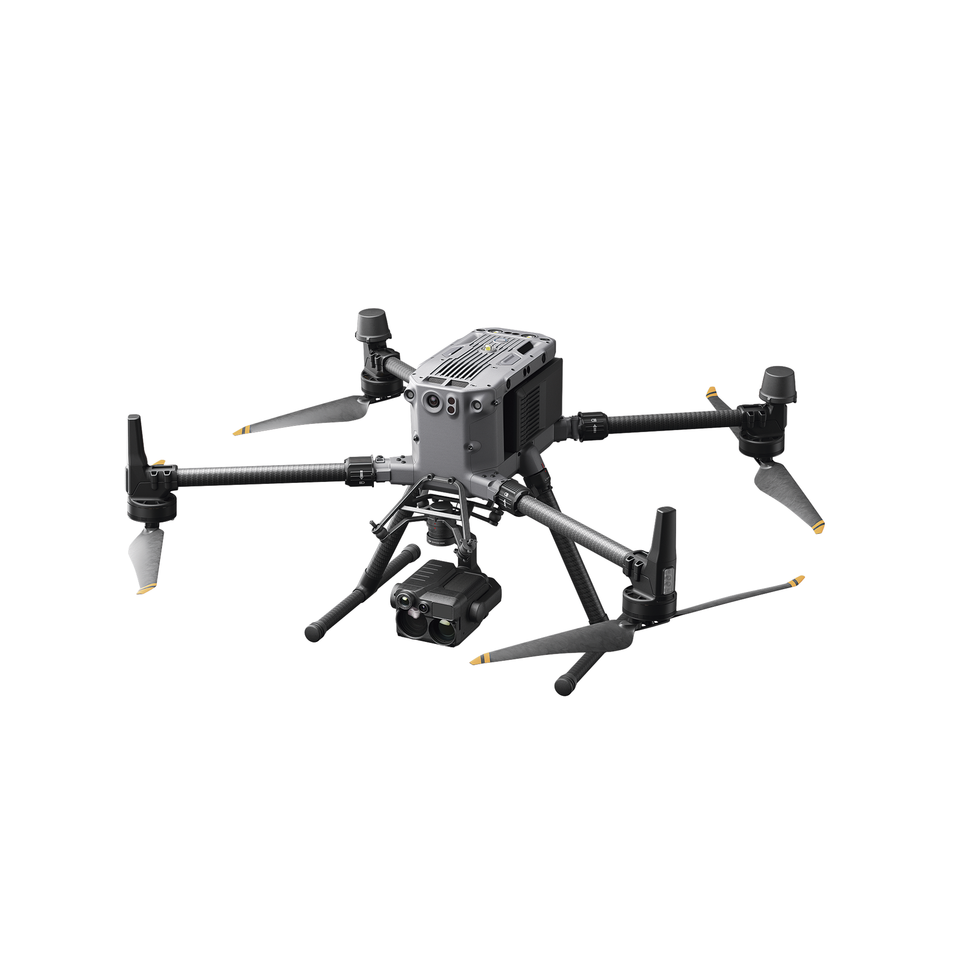 El sistema de cuatro sensores de la cámara de zoom, la cámara con gran angular, la cámara térmica y el telémetro láser funciona conjuntamente, complementado por algoritmos inteligentes avanzados, para ofrecer un excepcional rendimiento de detección y de generación de imágenes.