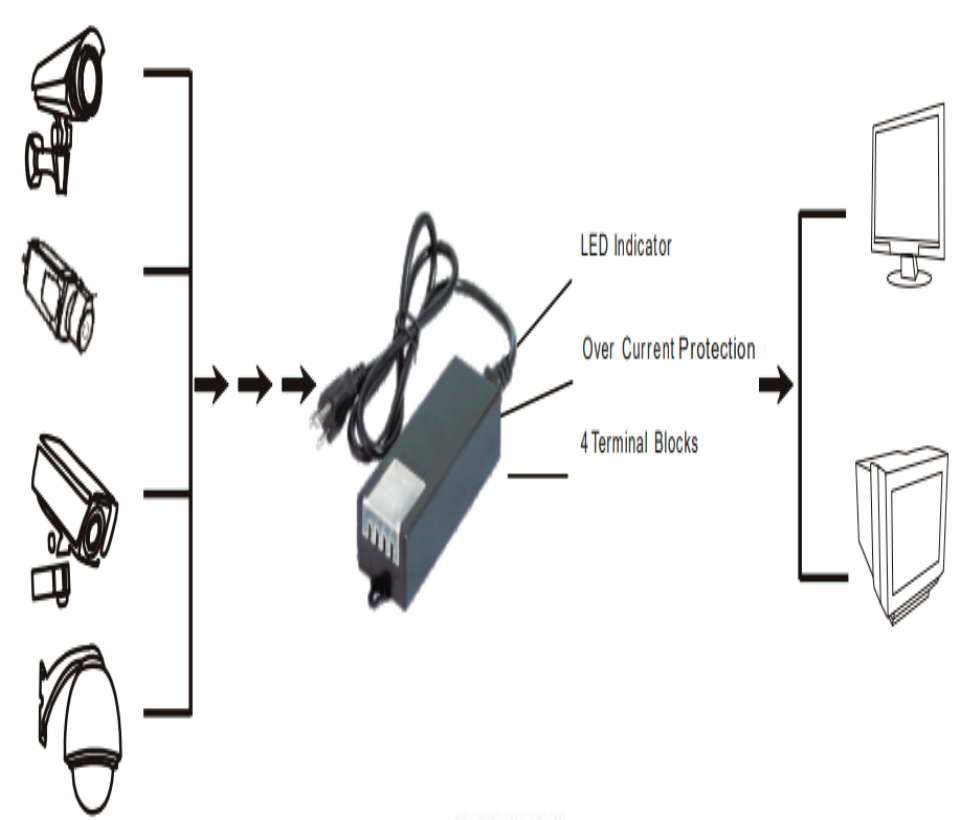 Fuente De Poder/ Saxxon/ Psu1250d4d/ Fuente De Poder De Poder De 4 Canales 12 Vcc 5 Amperes/ 1.25 Amper Por Canal/ Color Negro/ Entrada 100 V Ca - 240 V Ca/ Con ProtecciÓn De Descargas