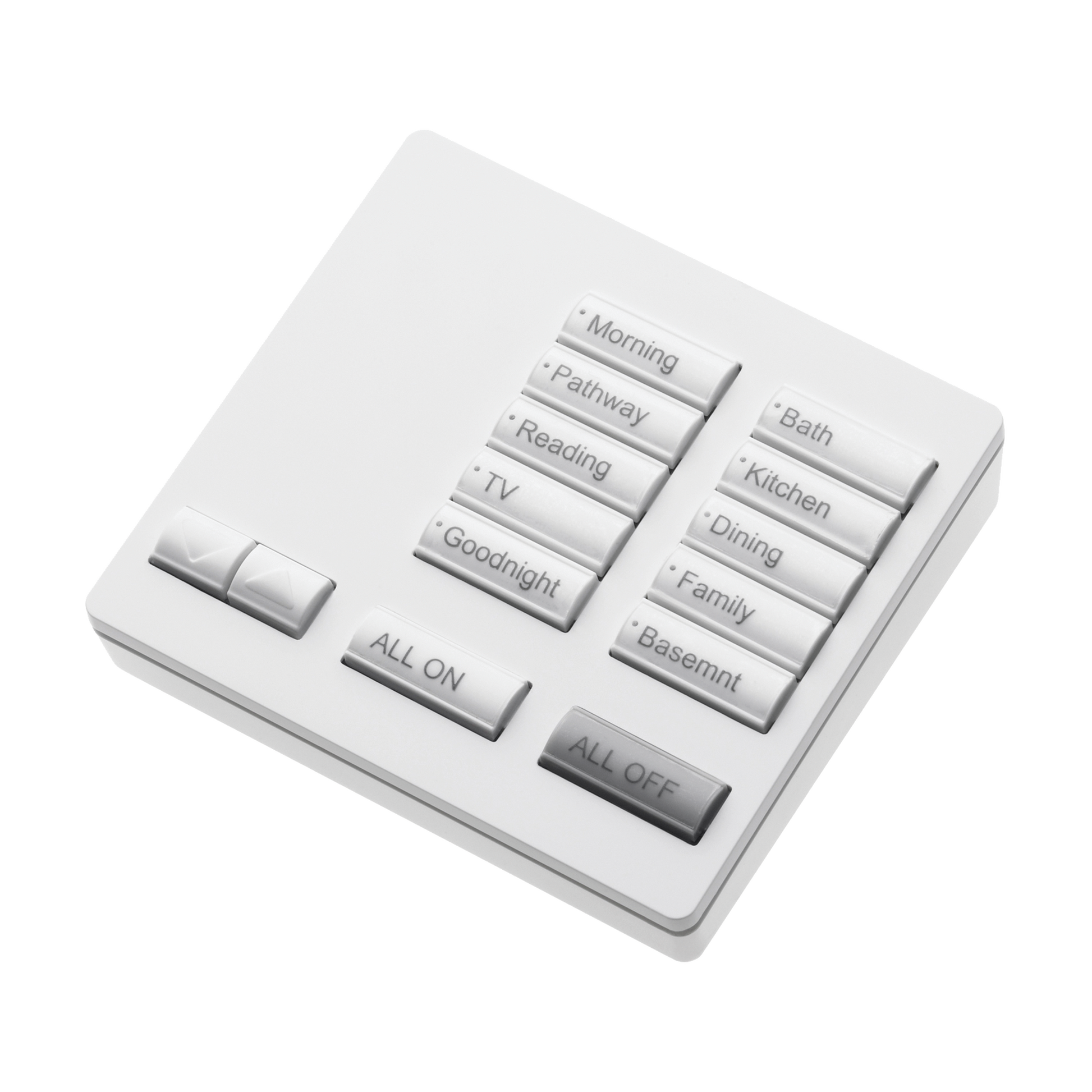 Las botoneras seeTouch® de sobremesa funcionan con baterías AAA estándar o con el adaptador enchufable incluido. Las botoneras de sobremesa permiten un control portátil y conveniente del sistema y cuentan con botones retroiluminados y grabado personalizado.