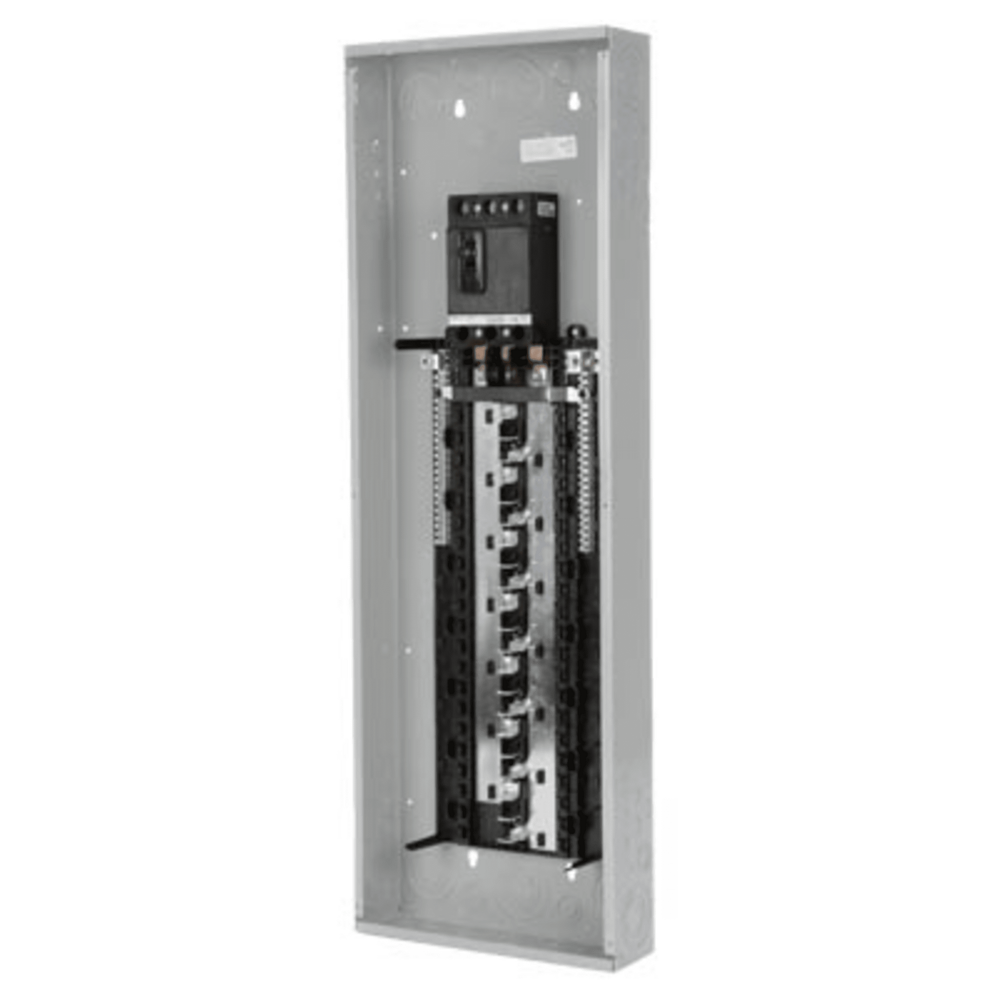 Siemens Low Voltage serie ES centro de carga. instalado de fábrica Interruptor principal con 42 espacios de 1 pulgada para un máximo de 42 circuitos. Trifásico 4 hilos Valor nominal del sistema 120/240 V o 120/208 V (225 A) 10 kA interrupción. Características especiales: Barra de aluminio, acabado gris, NEMA tipo 1, envolvente para uso interior.