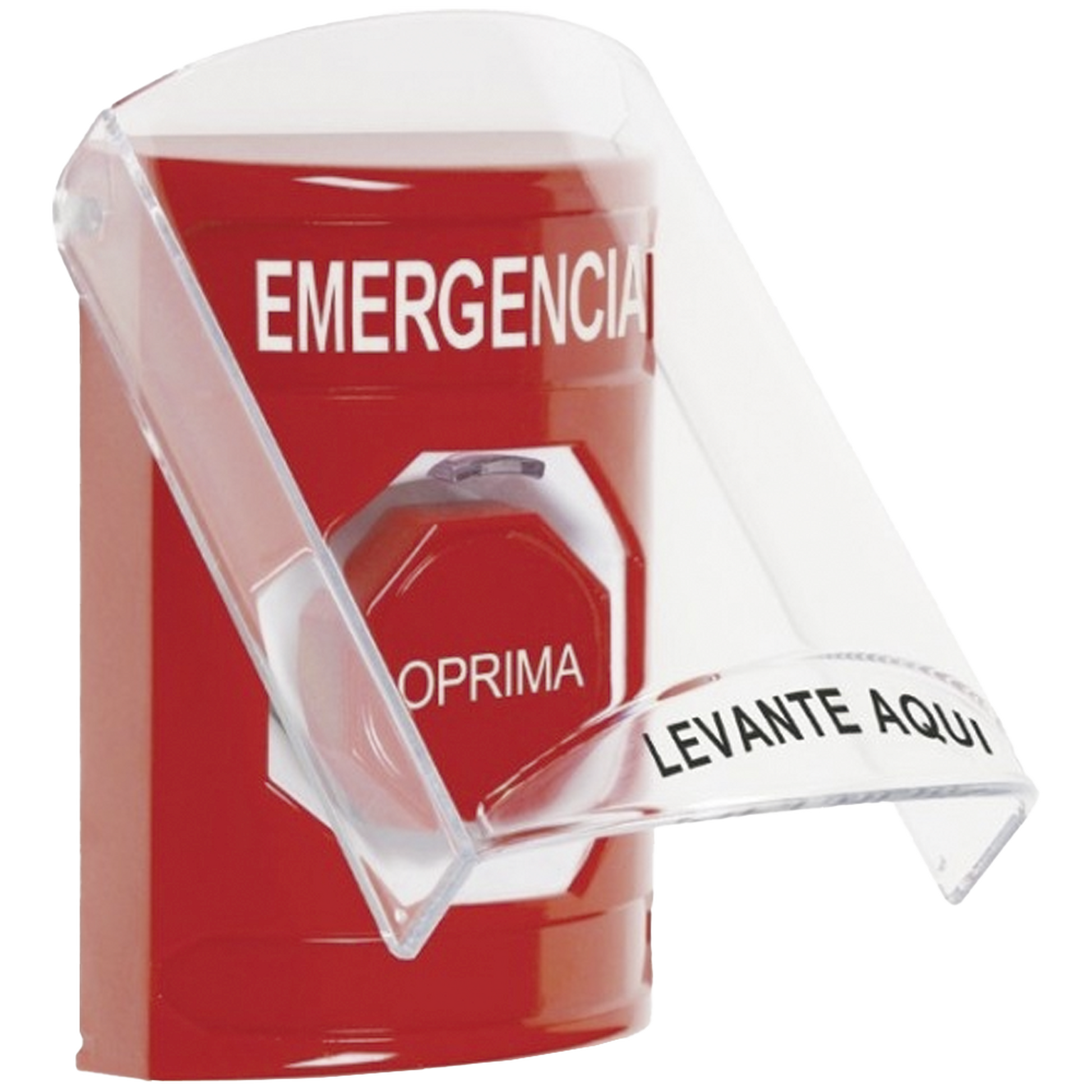 ?Botón Multipropósito, Color Rojo, De Superficie, Con Tapa De Policarbonato, Con Bocina Pre Alarma, Para Interior, Llave Para Restablecer, Texto De Emergencia, Español