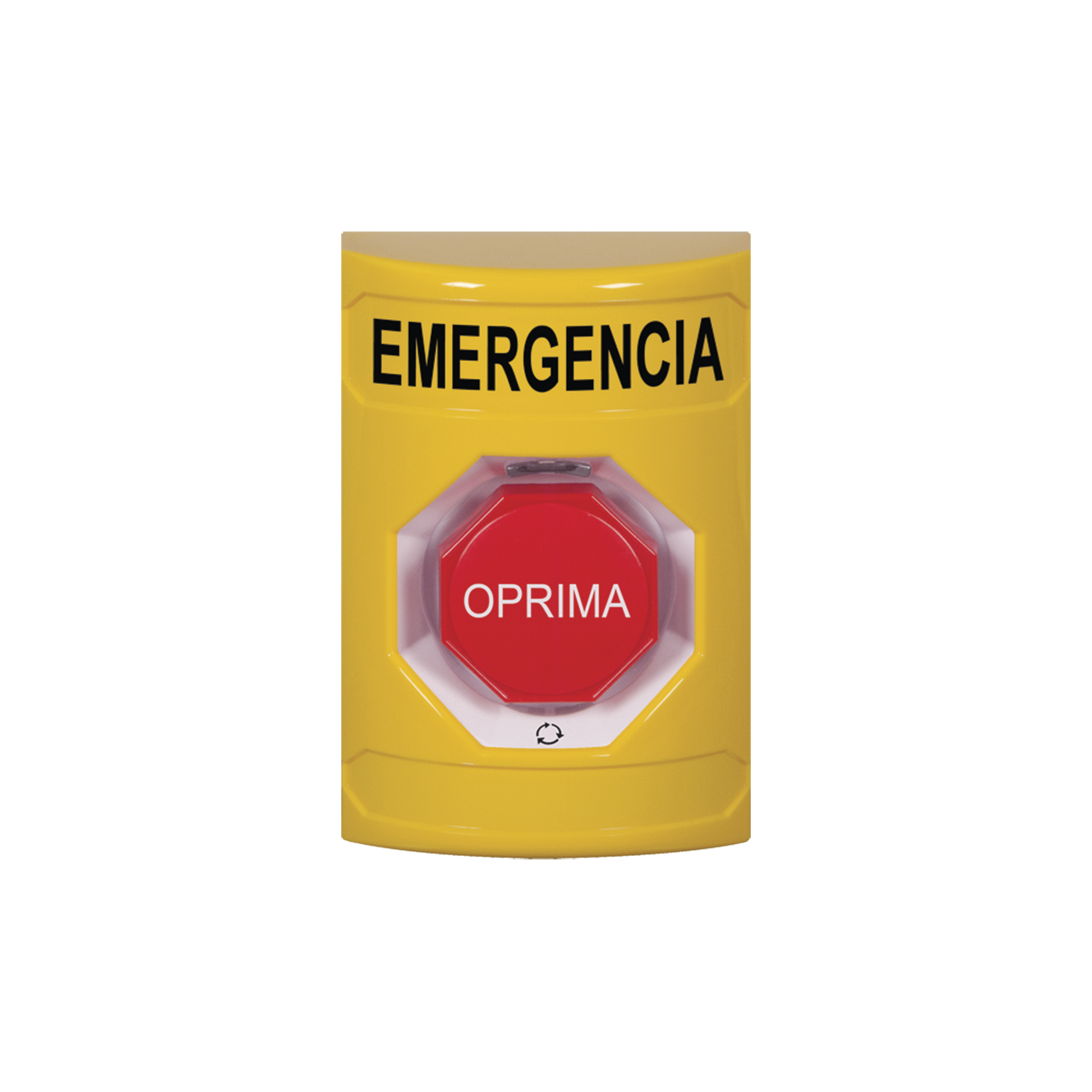 Botón de Emergencia en Español, Color Amarillo, Acción Mantenida, Girar para Restablecer y LED Multicolor