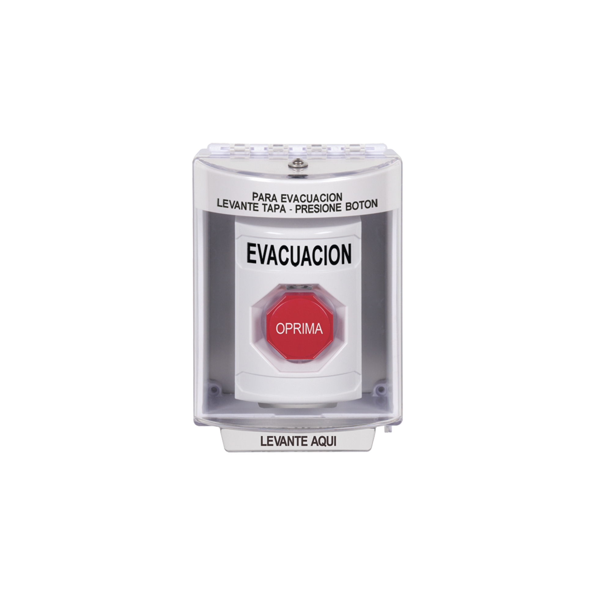 Botón de Evacuación, Cubierta de Policarbonato Súper Resistente de Superficie con Espaciador, Restablecimiento con Llave, Con Bocina de Advertencia
