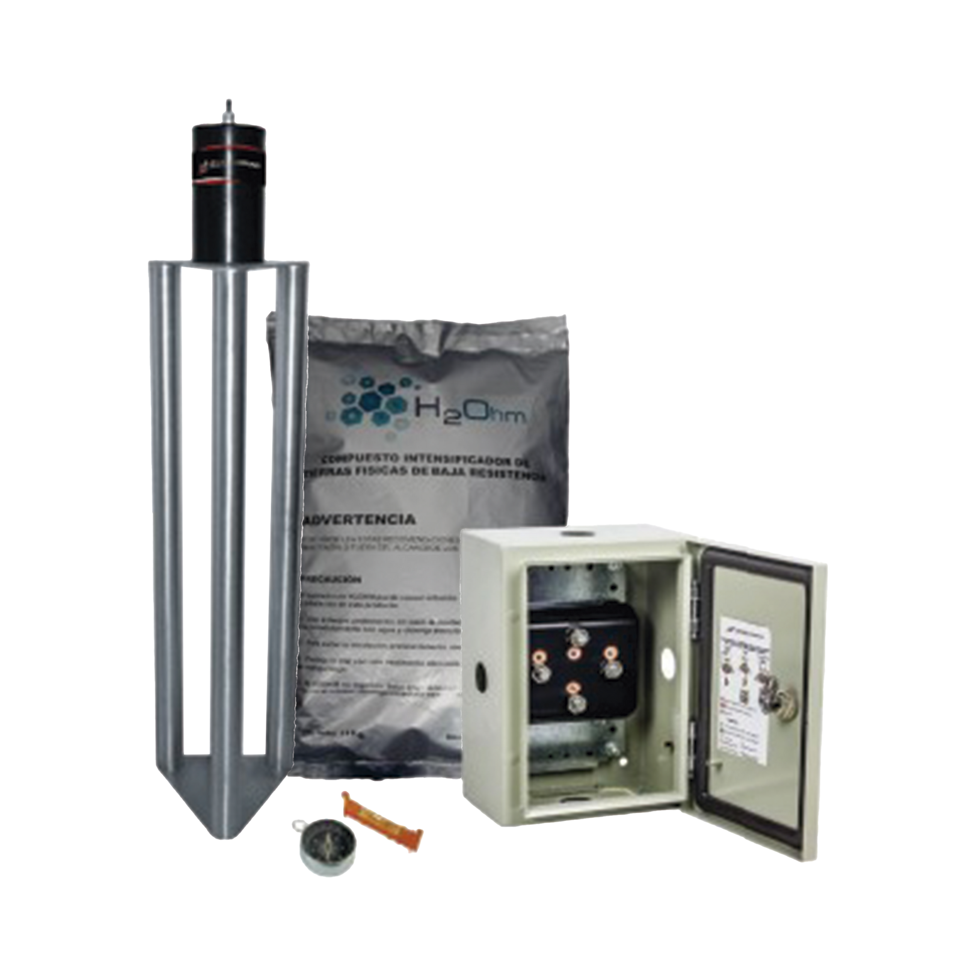 Electrodo de puesta a tierra de 400 A Fabricado en Acero inoxidable con Filtro y Compuesto H2Ohm.