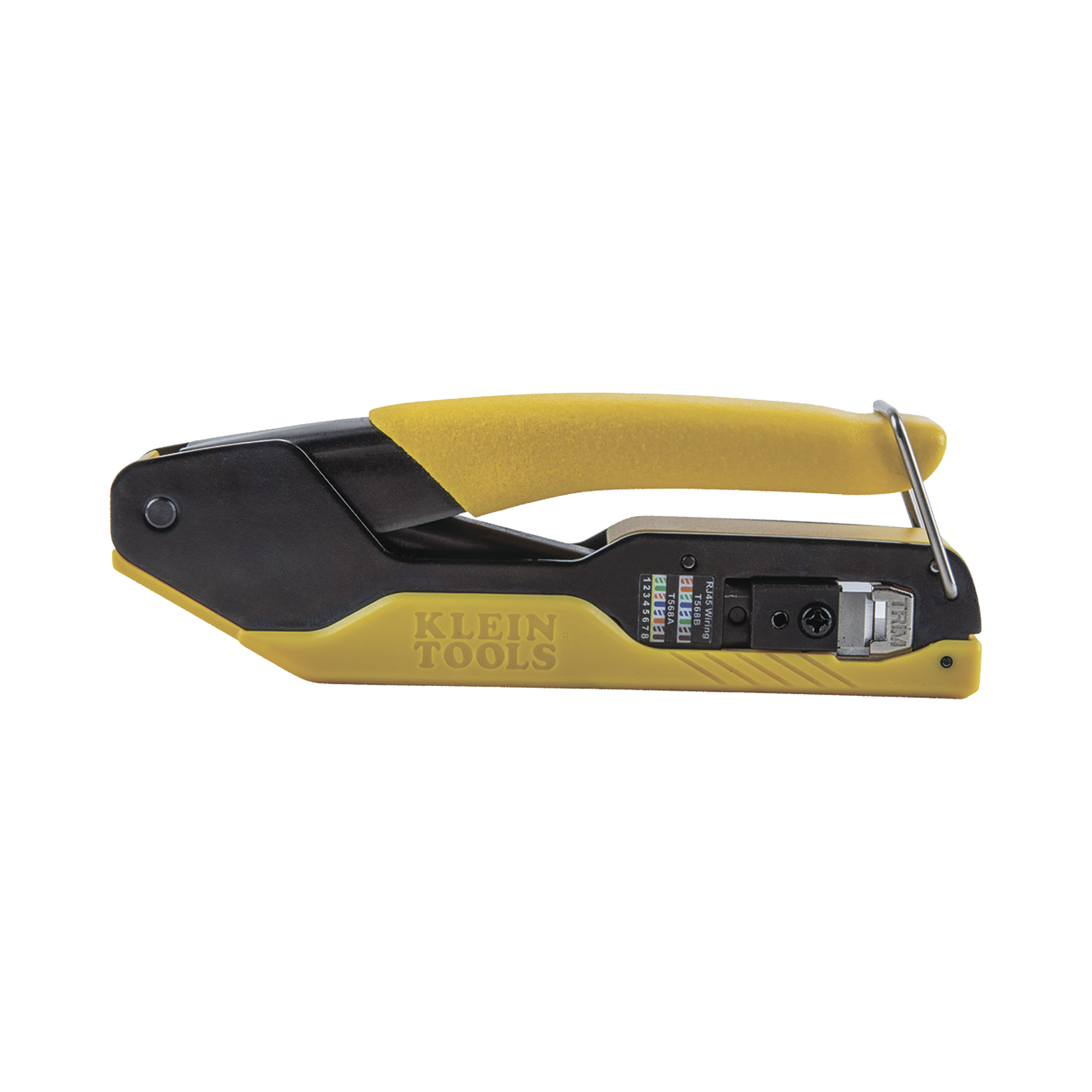 - Ponchadora compacta que poncha y recorta conectores RJ45 Pass-Thru™ de Klein Tools en cables de conductores de par (cables redondos STP/UTP).