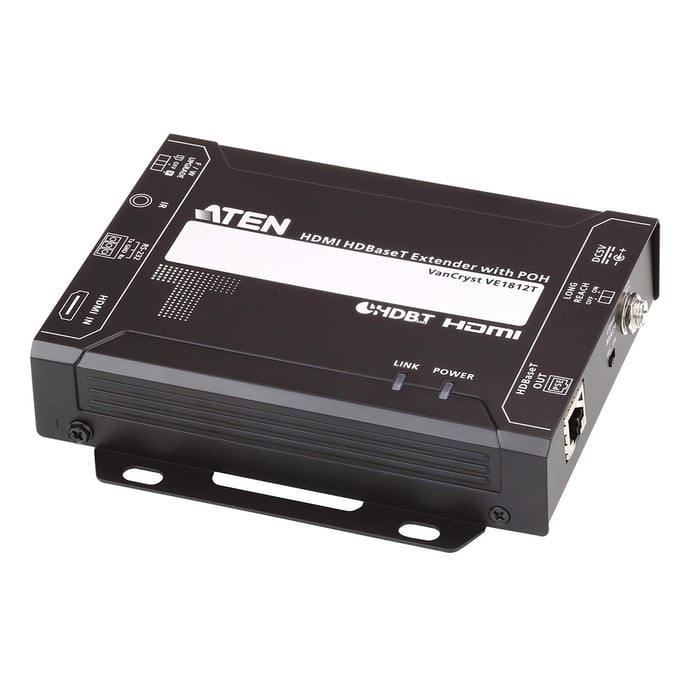 Cuenta con alimentación a través de HDBaseT (PoH) que envía energía de Tx a Rx a través de un cable Cat 5e/6/6a sin ninguna fuente de alimentación adicional. Admite paso de señalización RS-232 e IR, lo que permite a los usuarios controlar el dispositivo fuente HDMI desde la unidad receptora (VE1812R) y al mismo tiempo acceder al dispositivo de visualización HDMI desde la unidad transmisora (VE1812T). Las señales IR también se pueden extender en ambas direcciones. El receptor VE1812R con PoH es compatible con HDMI (3D, Deep Color, 4K) y HDCP. Al transmitir HDMI/4K con un cable Cat 6a o ATEN 2L-2910 Cat 6, la distancia máxima puede alcanzar hasta 100 metros. Con el modo de largo alcance habilitado, el VE1812R puede extender la señal HDMI hasta 150 m a 1080p. El VE1812R es perfecto para aulas digitales, salas de videoconferencia, juegos o cualquier instalación que requiera una calidad de vídeo superior.