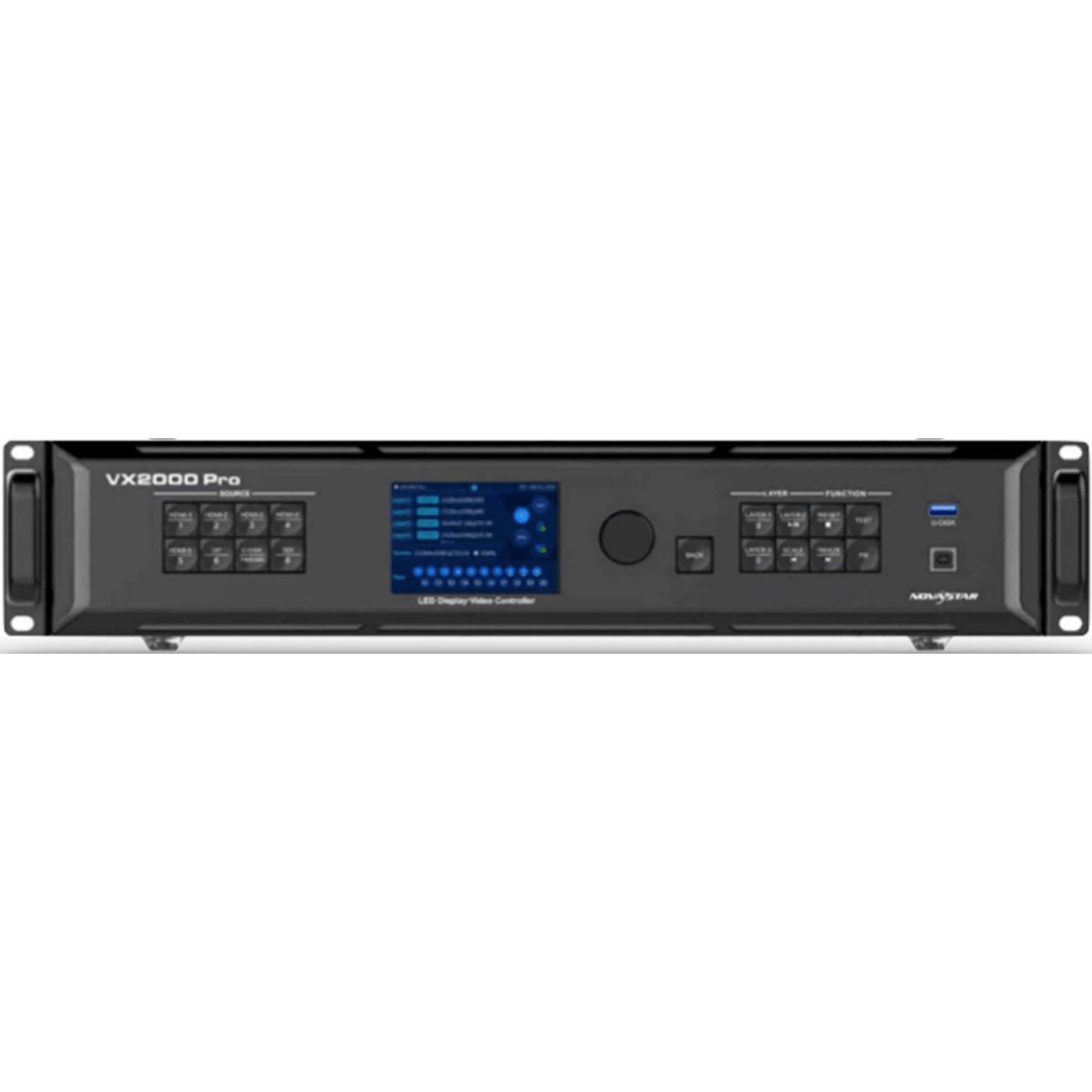 El VX2000 Pro es un controlador todo en uno que combina procesamiento y control de video en un solo dispositivo. Equipado con 20 puertos Ethernet, soporta tres modos de trabajo: controlador de video, convertidor de fibra y ByPass. Capaz de gestionar hasta 13 millones de píxeles, el VX2000 Pro puede generar una salida máxima de 16,384 x 8,192 píxeles, ideal para controlar pantallas LED ultra anchas y ultra altas. Con una potente capacidad de recepción y procesamiento de señales de video, soporta una resolución máxima de entrada de 4K×2K@60Hz, múltiples entradas de video, 12 capas, escalado de salida, baja latencia y calibración de brillo y croma a nivel de píxel.