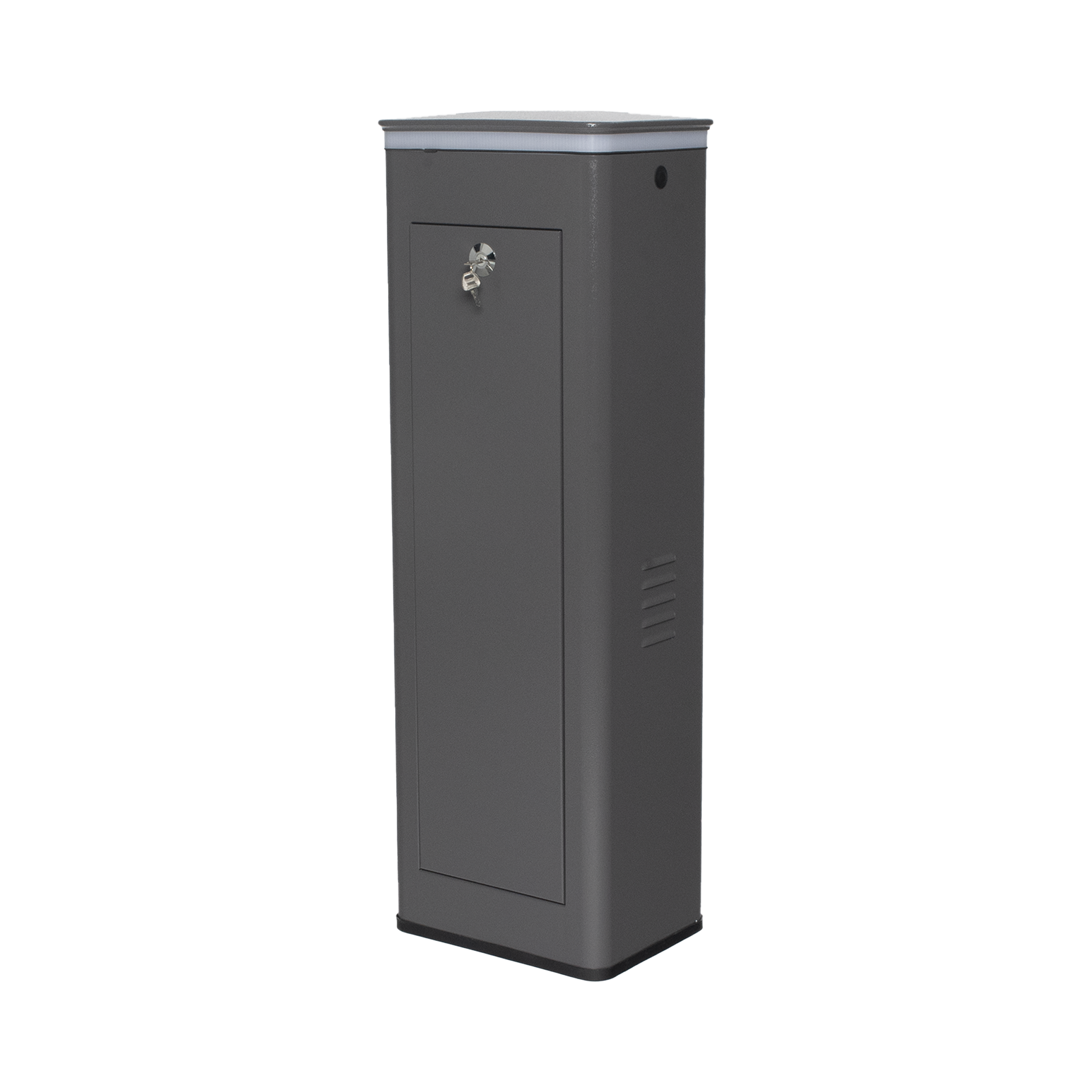Barrera Vehicular Derecha / Soporta Brazo de Hasta 5.5 m / Final de Carrera Ajustable Por Programación / Movimiento fluido / Diseño Elegante Color Gris / Con Corona Led Semaforizada