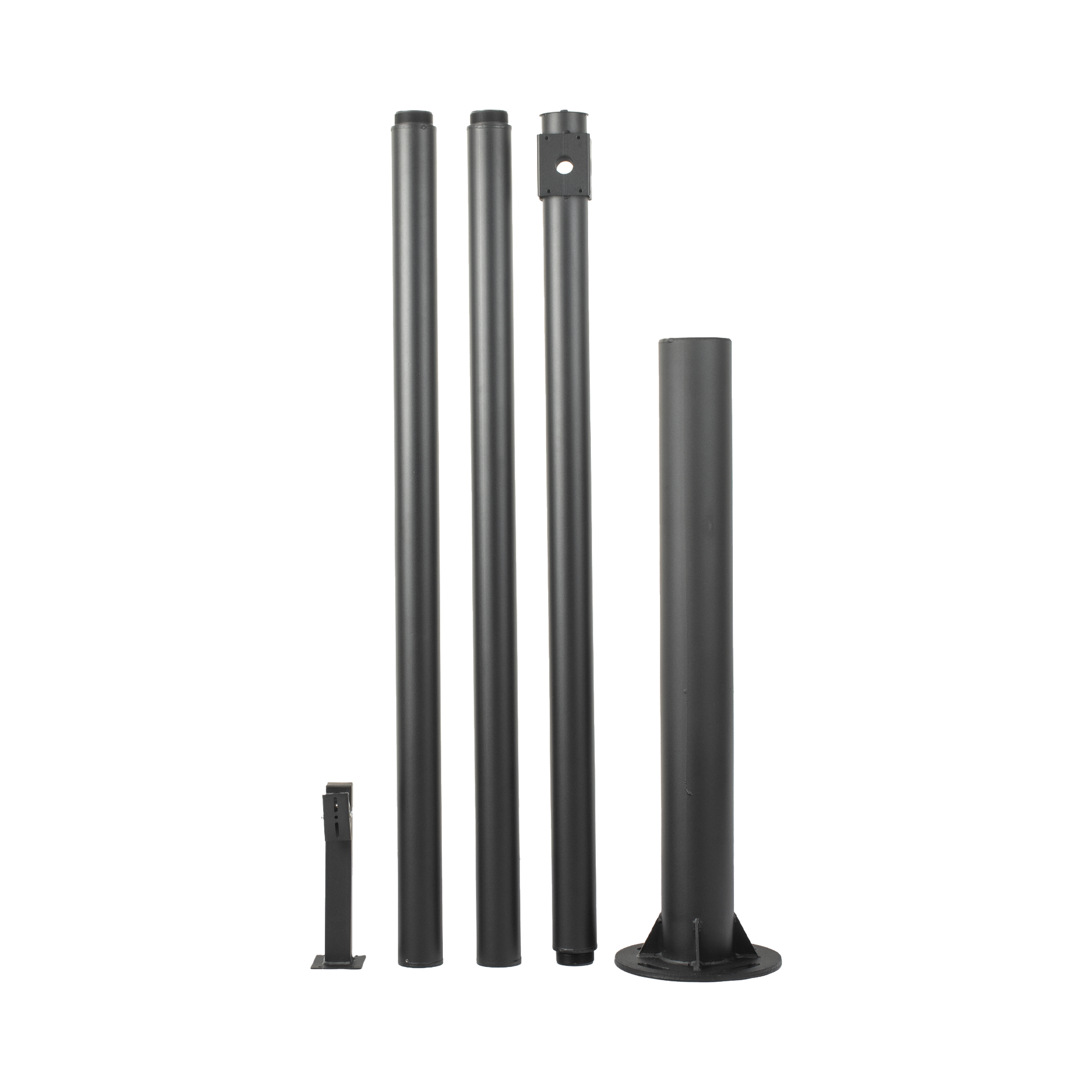 Poste Seccionado de 6 Metros / Especializado para la Instalación de Videovigilancia / Incluye Base de Cimentación y Brazo para Cámara PTZ / Color Negro